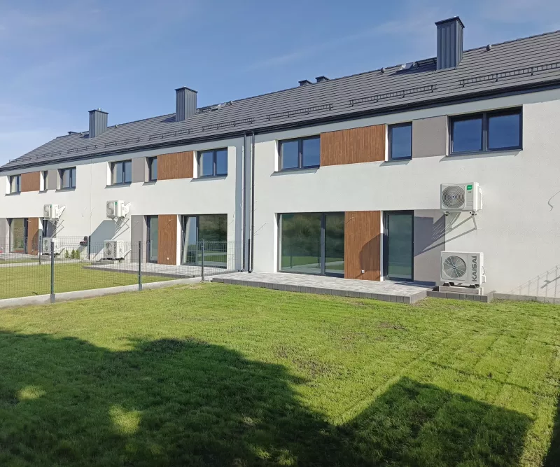 - Każdy z domów posiada powierzchnię użytkową 129,65 m2 oraz działkę o powierzchni od 300 do 470 m2.