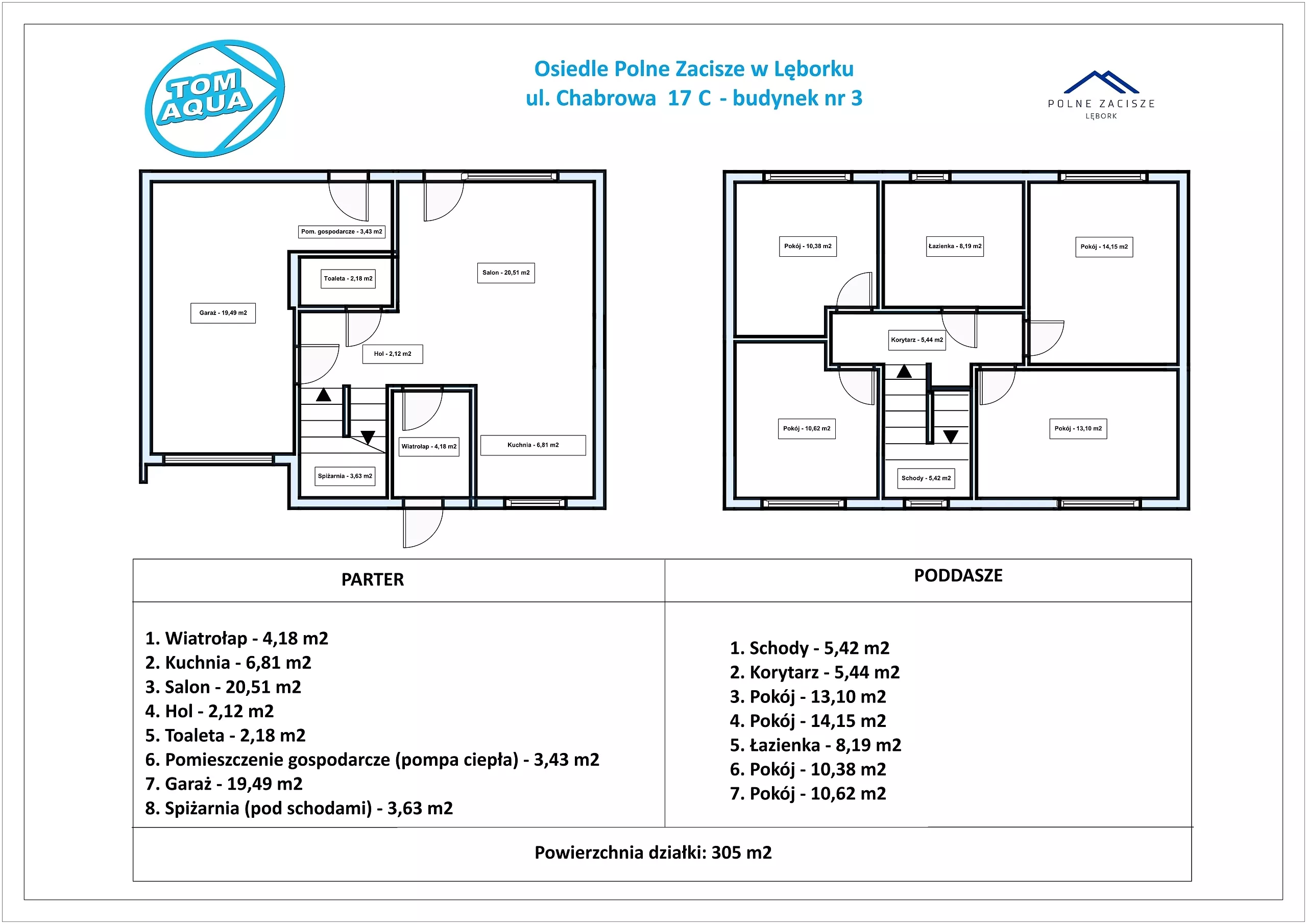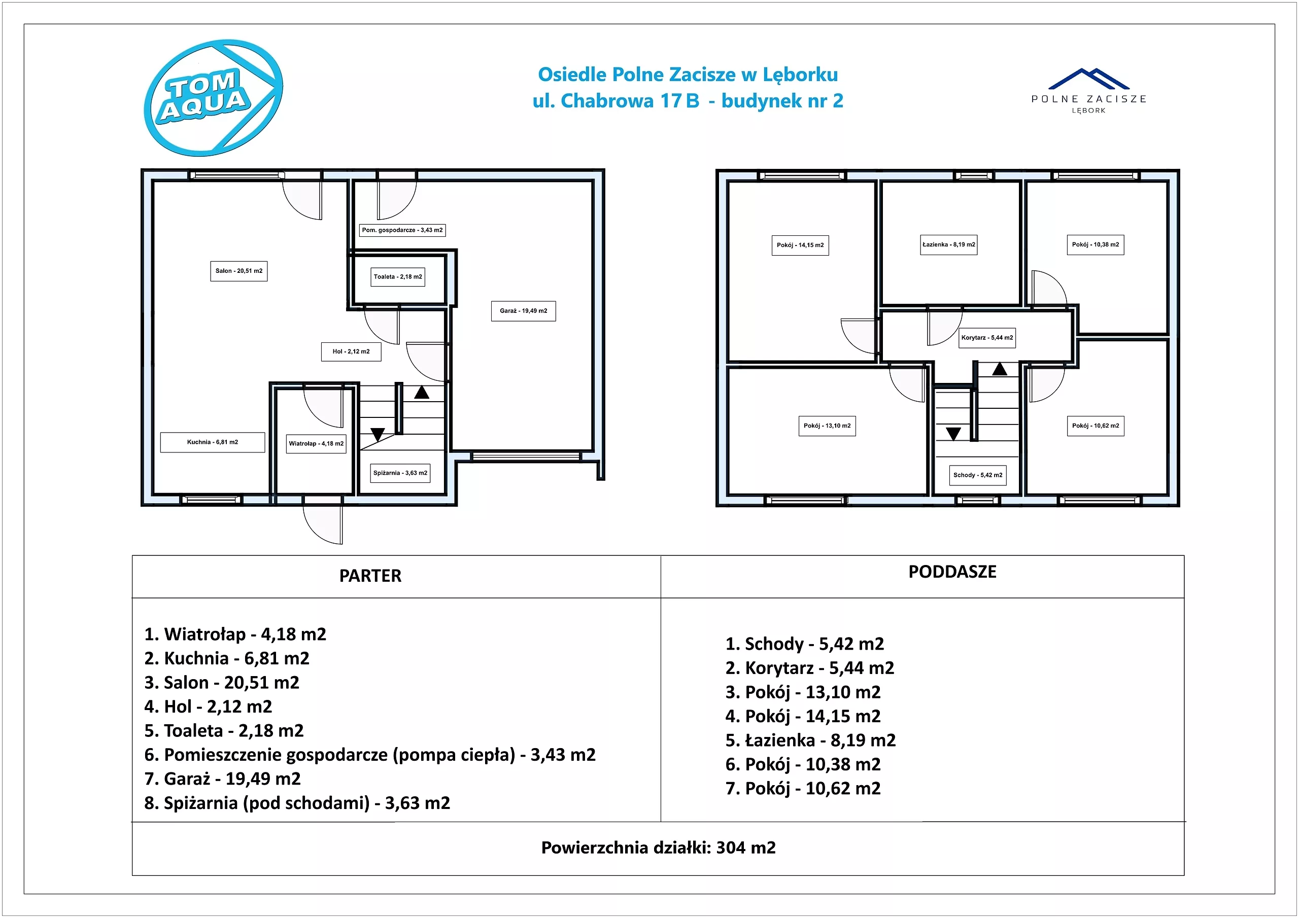 - Każdy z domów posiada powierzchnię użytkową 129,65 m2 oraz działkę o powierzchni od 300 do 470 m2.