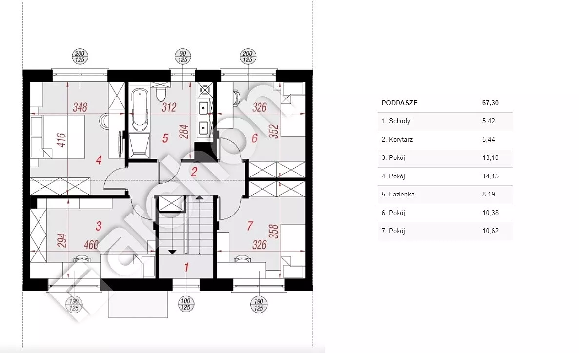 - Na pierwszym piętrze znajdować się będą 4 sypialnie, łazienka z miejscem na wannę i prysznic oraz przedpokój.